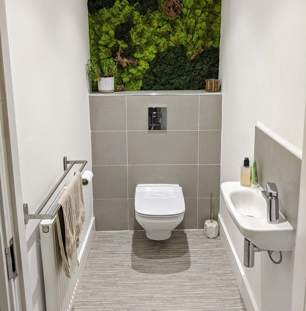 Xu hướng thiết kế phòng tắm 2m2 không thể bỏ qua yếu tố thẩm mỹ. Những căn phòng sẽ được trang trí bằng cây xanh nhiều hơn. Các chậu cây nhỏ được đưa vào nhà tắm để tạo nên yếu tố decor và thanh lọc không khí. Các chậu cây nhỏ có thể được đặt ở chính những chiếc kệ treo tường để đồ. Hoặc bạn có thể sử dụng những móc treo trừ trên trần xuống để treo các chậu cây.